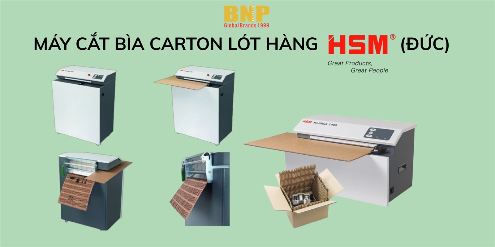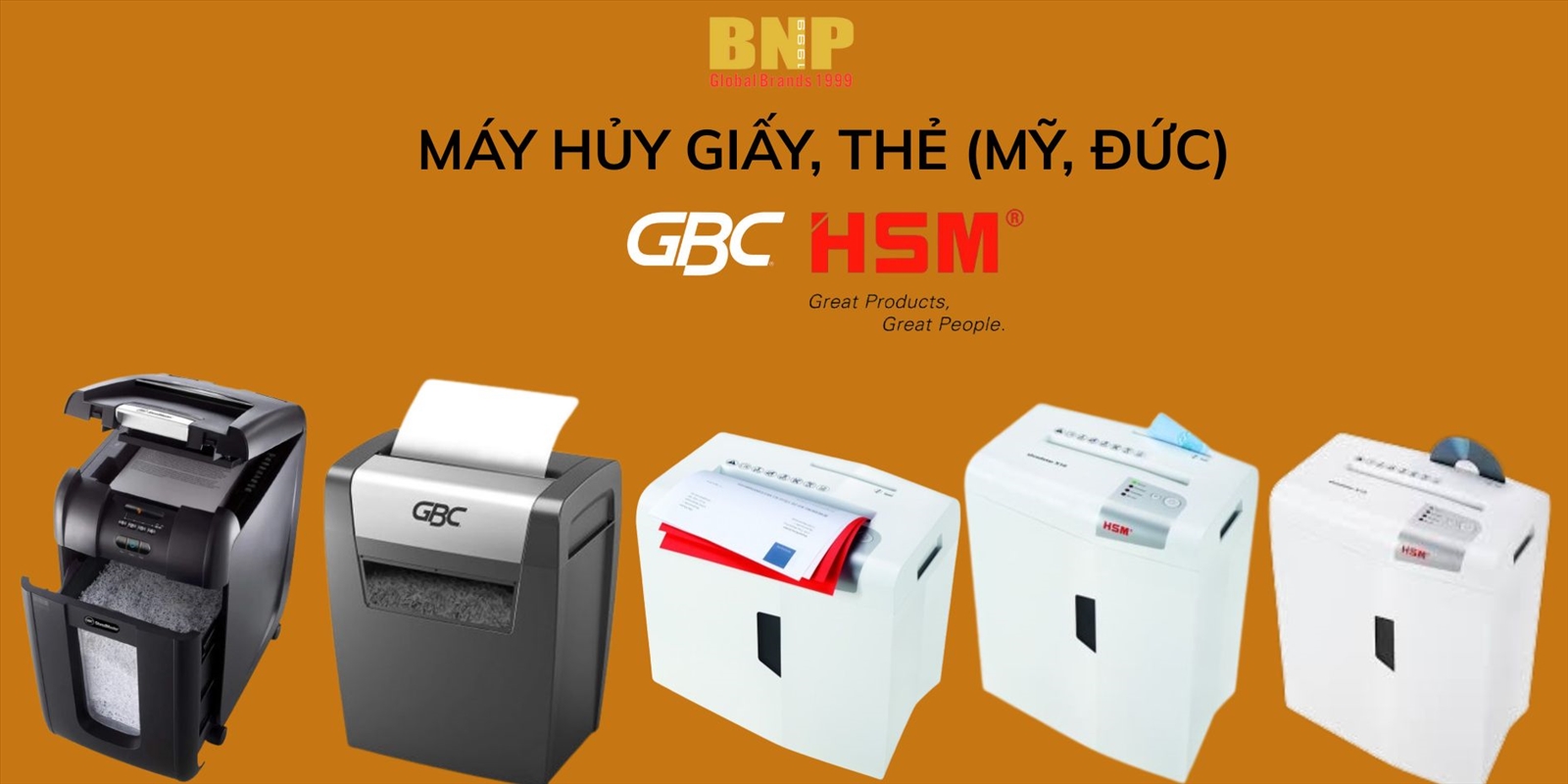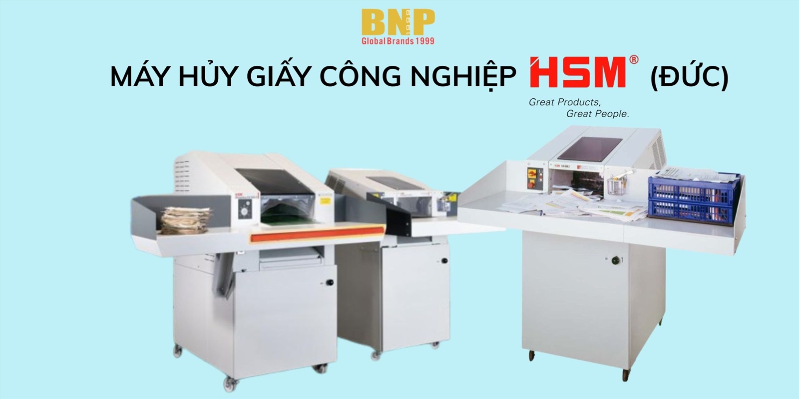 Xem thêm+BNP tự hào là nhà nhập khẩu và phân phối độc quyền Máy Hủy Giấy thương hiệu HSM (Germany) tại thị trường Việt Nam. +Tất cả sản phẩm Máy Hủy Giấy HSM bán ra đều được nhập khẩu từ Đức, đạt tiêu chuẩn chất lượng từ những năm 1990. Thiết kế mẫu mã đa dạng và chất lượng tuyệt đối, máy chạy ổn định và không bị kẹt giấy. +Một số máy hủy Giấy cho phép hủy được kim bấm, kim kẹp, đĩa CD và cả thẻ tín dụng để phục vụ tối đa nhu cầu của khách hàng.
