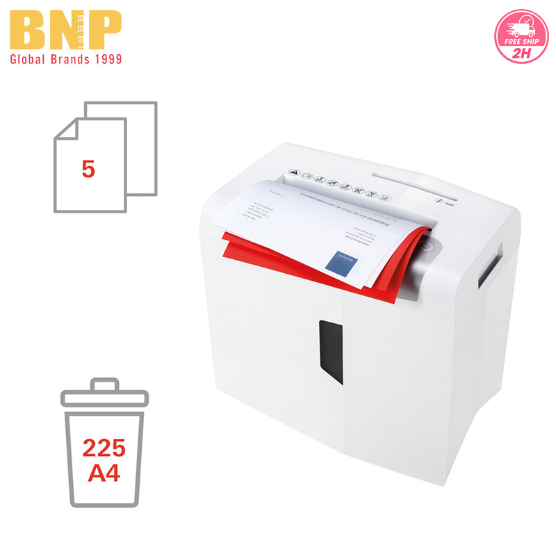 - Công suất hủy (tờ A4, 80 gsm): Tối đa 5 tờ/lần